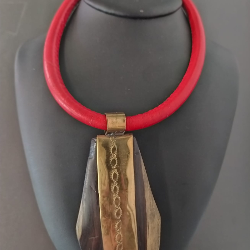 Le bois, souvent utilisé en combinaison avec le cuir et le laiton, ajoute une dimension organique et naturelle au collier. Les perles en bois sont sculptées avec précision, offrant des textures et des motifs uniques qui célèbrent la beauté de la nature africaine.